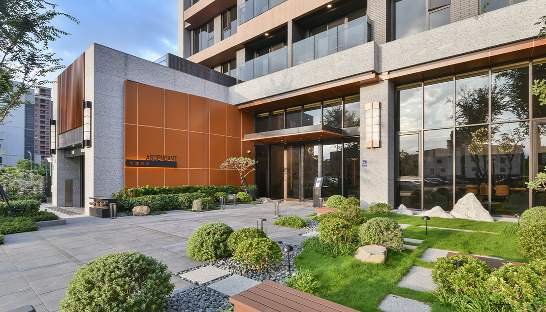 外觀設計以當代簡約為基底,輕撫自然的紋理,光影的韻律,輕巧而細膩,簡約雅緻而深入人心。庭院綠意,謙退一步,與自然相融,放緩城市步調,收斂繁雜與喧囂。