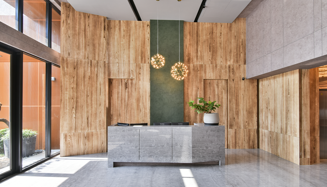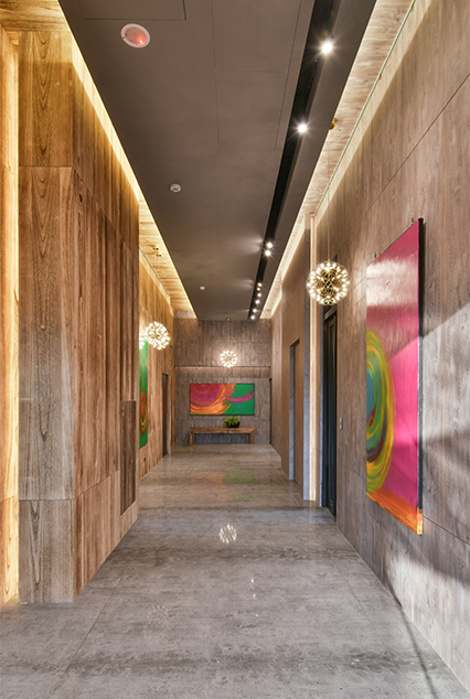 浮光掠影下,柔和門廳氛圍,木質與石材異材質的搭配,為空間增添多樣化的層次感,而藝術畫作跳躍的色彩,更讓空間為之一亮,細細品味,細膩的人文語彙盡在生活當中。