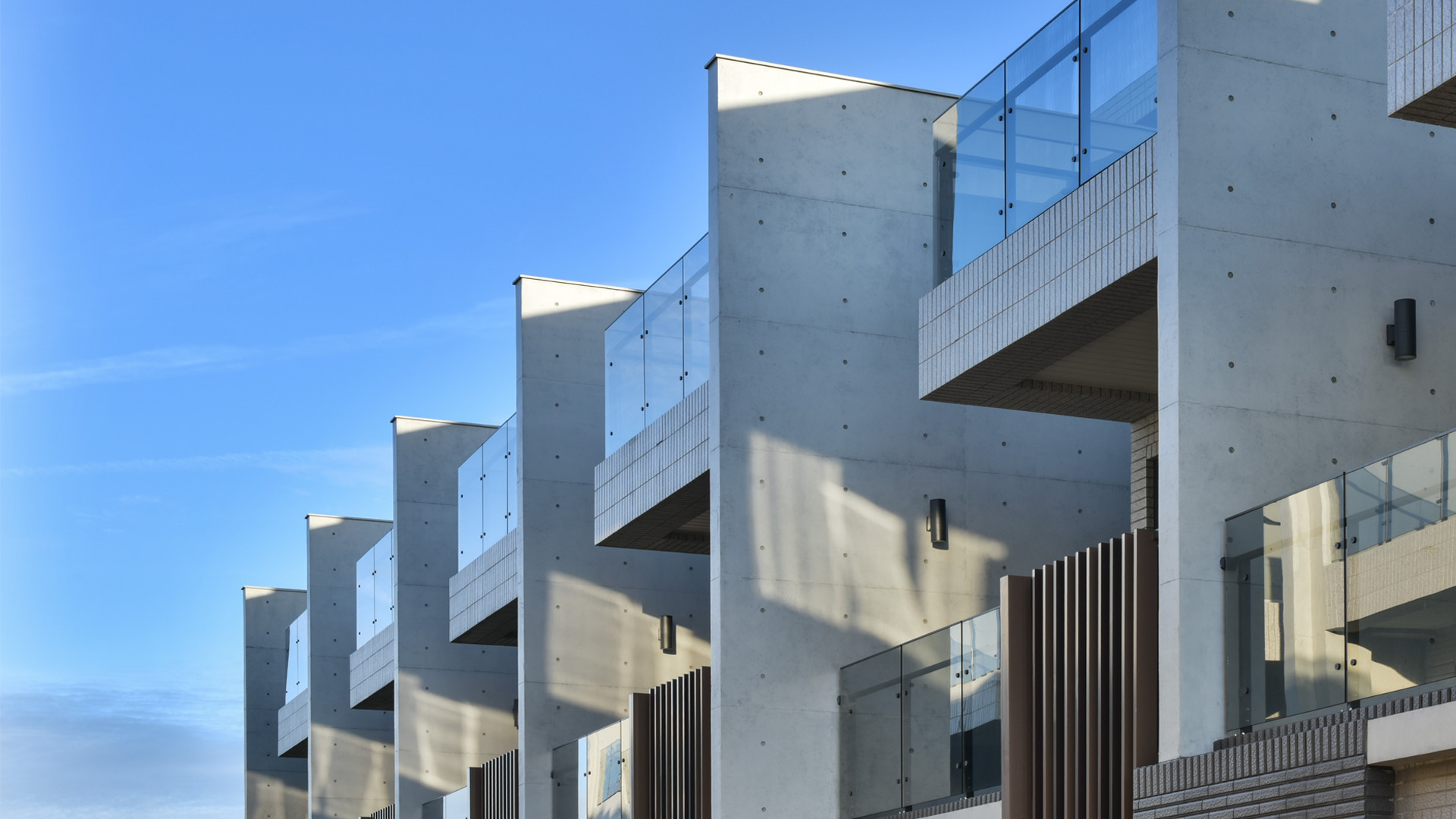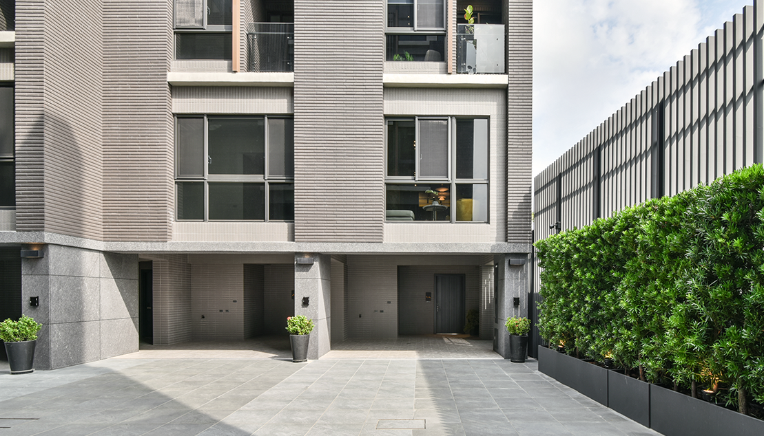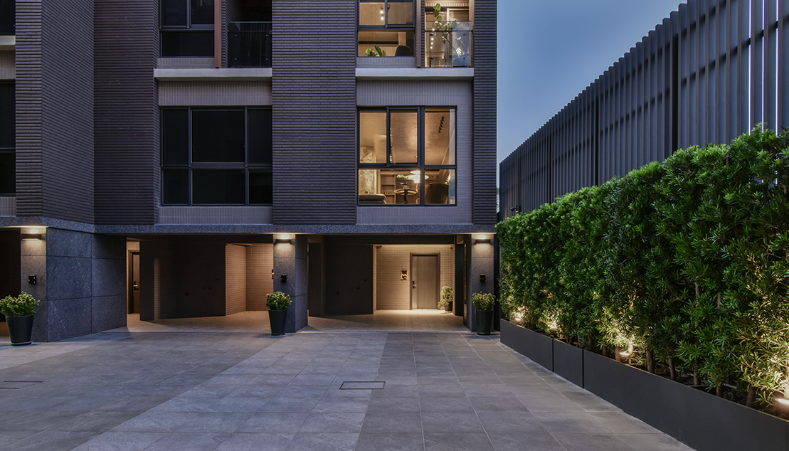 以清水模人文質地,搭配玻璃陽台與格柵之美,展現當代別墅氣韻的靜謐氛圍,讓建築不只是建築,更是收藏生活的容器,蒐羅一切美好記憶的時光場域。